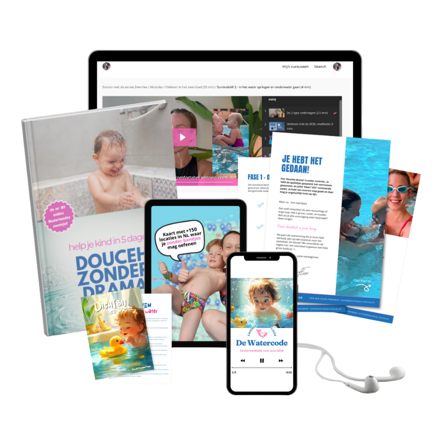 Ben je hier omdat je wilt dat je kind geen angst meer heeft, zichzelf kan redden zonder bandjes of eindelijk échte zwemslagen gaat leren?