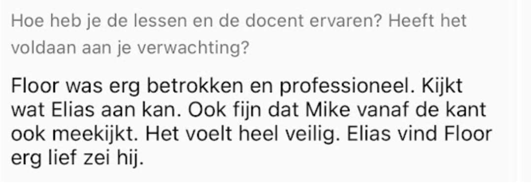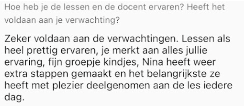 - Resultaat = vergelijkbaar met minimaal 3-6 maanden reguliere les.